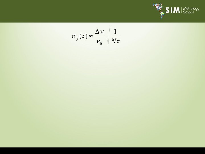 The ideal atomic clock Atomic transition with frequency o free of perturbations (unperturbed atom) ( v=0, g=0, T=0, B=0, E=0, t , etc). p o : Ancho de línea, idealmente dada por la transformada de fourier del tiempo de observación, ~1/Tc, require niveles atómicos estables, tiempo de interacción grandes, factores de calidad del oscilador local muy altos. p: Ruido de medición, idelamente limitado por la proyección de ruido cuántico Qnoise~1/ N donde N es el número de átomos medidos, ruido blanco
