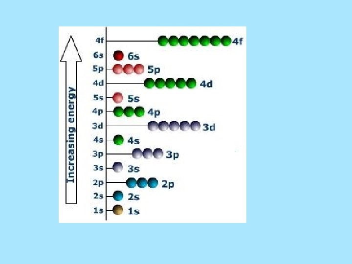 Bohr’s Model of the Atom (1913) 1. e- can have only specific (quantized) energy values 2. light is emitted as e- moves from one energy level to a lower energy level En = -RH ( 1 n 2 ) n (principal quantum number) = 1, 2, 3, … RH (Rydberg constant) = 2. 18 x 10 -18 J