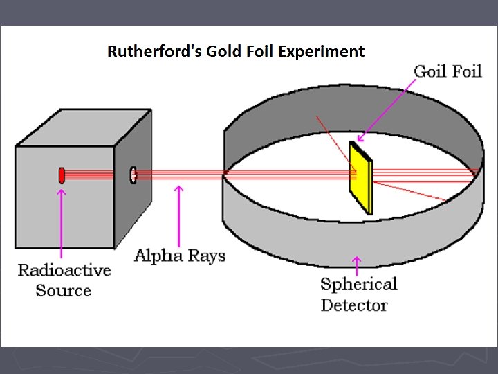 Gold Foil Experiment Results most alpha particles go straight through the gold foil A few alpha particles are sharply deflected