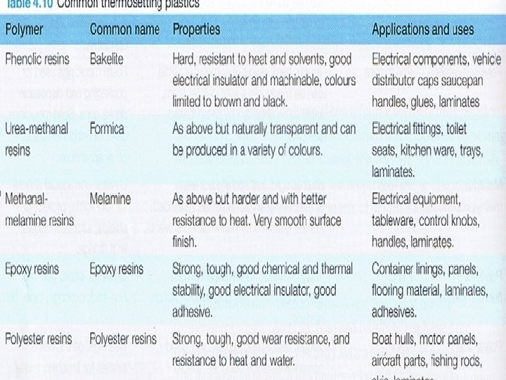 • Polymerisation is the process by which these smaller units are joined together to create a large chain. Polymer include such materials like rubber and plastics. • Plastics are subdivided into thermoplastics, thermosetting plastics and rubbers • Thermoset plastics- are rigid plastics, resistant to higher temperatures than thermoplastics. Once set, a thermoset plastic cannot be remolded. There are several common thermoset plastics: