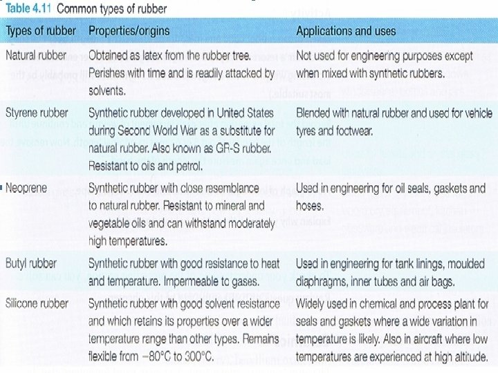 Thermoplastics become soft when heated. They can be easily moulded and remoulded without significant degrading. Thermoplastics consist of long molecular chains with no regular structure (or very little regular structure). base unit • Rubbers • The polymers in rubbers are known as elastomers. They are longer and tend to be more complex than other polymers. Elastomers can made up of more than 40000 atoms and when the material is unloaded, they are intertwined and folded over each other in a random