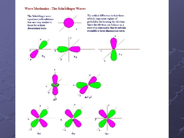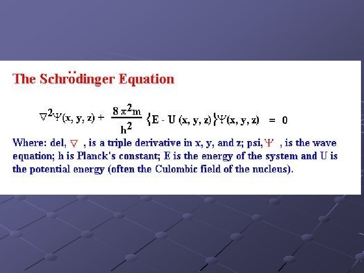 Schrodinger Used de Broglie’s idea to explain Bohr’s model. Electrons can only have certain quantized energies because of the requirement for only whole numbers of wavelengths for an electron wave. (p. 199) Demonstrate with waves in a spring.