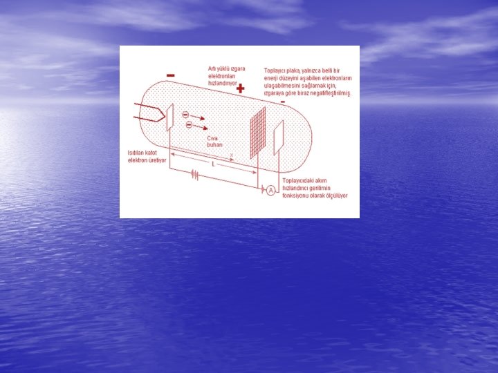 6 - PROTONUN KEŞFİ • Katot tüpleriyle elektron elde edildiği gibi, elektrik deşarj (boşalma ) tüpleri ile de pozitif iyonlar elde edilir. Bu tüplerde uygulanan yüksek gerilim sonucunda atomdan elektronlar koparılarak pozitif iyonlar oluşturulur. Oluşan bu pozitif iyonlar bir elektriksel alanda elektronun ters yönünde hareket ederek negatif elektrota (katota) doğru ilerler. Bu iyonların büyük bir kısmı hareketleri sırasında ortamdaki elektronlara çarparak nötral atomlar oluştururlar. Çok az bir kısmı ise yollarına devam ederek katota erişirler. Eğer ortası delikli bir katot kullanılırsa, pozitif parçacıklar delikten geçerler. Bu ışınlara pozitif iyonlar ya da kanal ışınları denir.