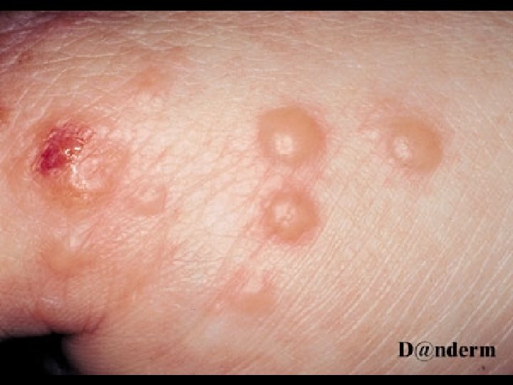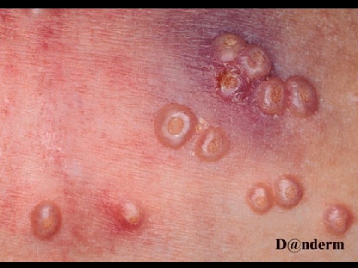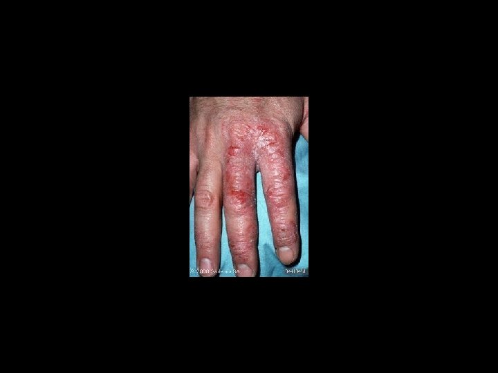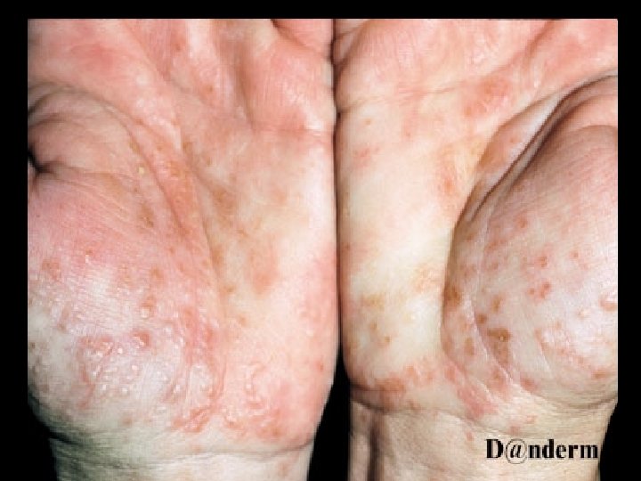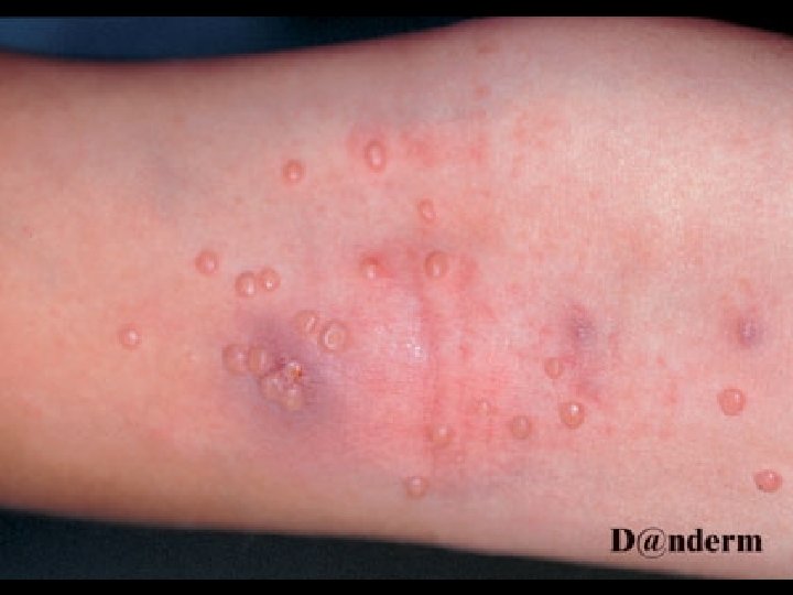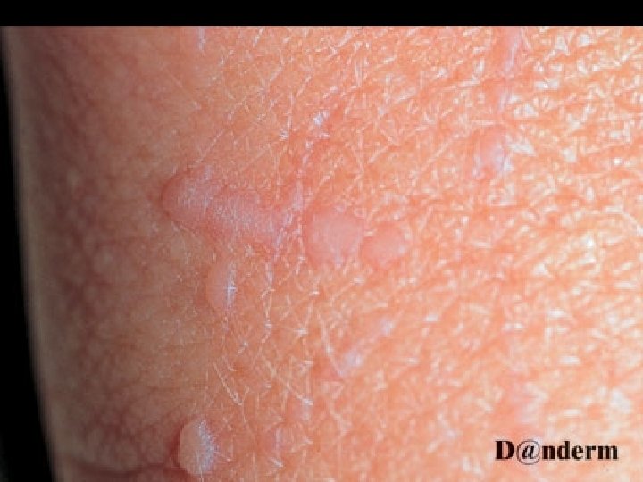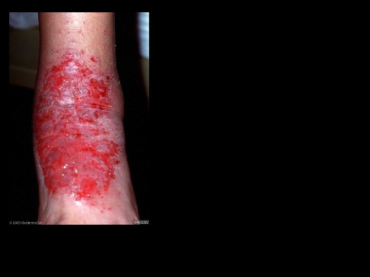 Acute eczema • Acute: pruritus, erythema, vesiculation