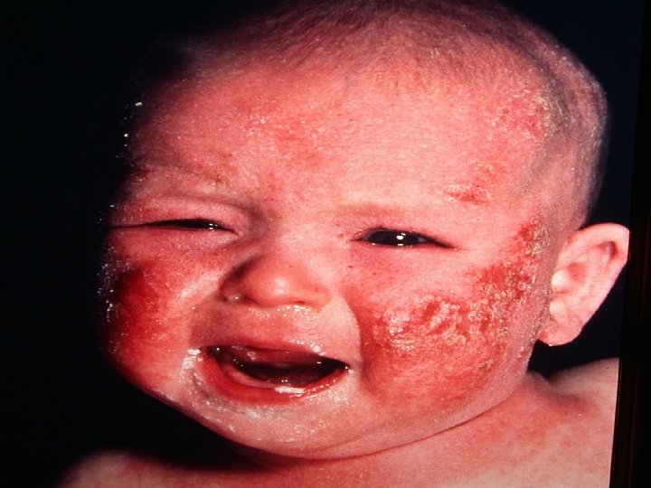 Atopic dermatitis • Chronic relapsing skin disorder (prevalence 20%) • Onset <5 years in 80% • 40 -60% remain symptomatic as adult • 85% ↑ Ig. E, 80% associated with asthma/allergy • Family Hx of atopy