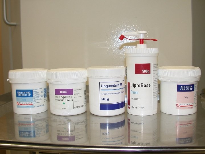 Basic stuff • Avoid provoking factors (wool, bubble baths, soaps, perfumes) • Avoid dryness: Bath oils (Oilatum, Hydromol, Aveeno, Dermol) Soap substitutes (Aqueous cream, Dermol) Emollients (500 g in 2 weeks) • Treat any infection • Antihistamines • Reduce inflammation