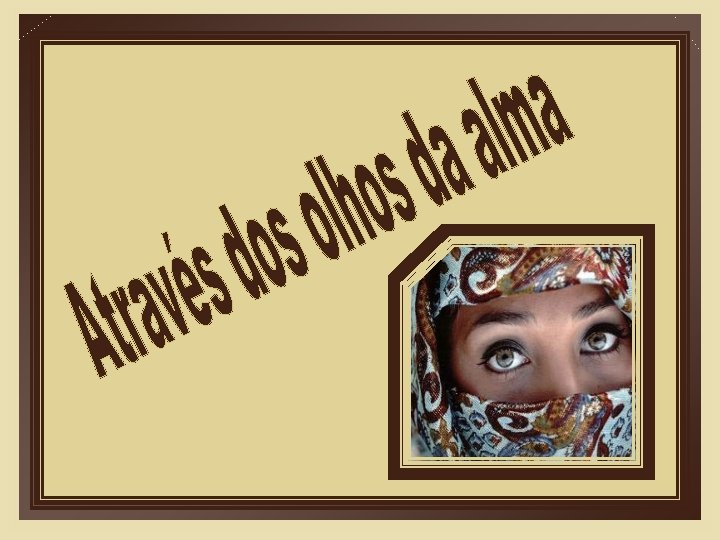 Através dos olhos da alma. . . A imaginação me faz sorrir, a mágica de seu olhar encanta-me, aquecendo-me com suas músicas, em cada cantinho do meu ser! Através dos olhos da alma. . . Encontrei você que me permitiu em lindos momentos. . . A sonhar junto aos sonhos seus. Através dos olhos da alma. . . A nossa sensibilidade sorriu! Unimos a melodia aos versos, emoldurando o nosso incerto amanhã!