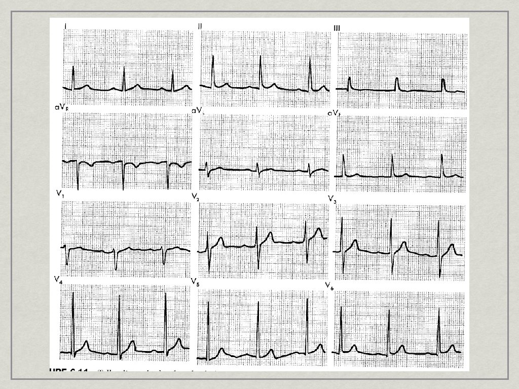 Right Atrial Abnormality • Tall P waves in any of the following leads: • II, III, a. VF or sometimes V 1.