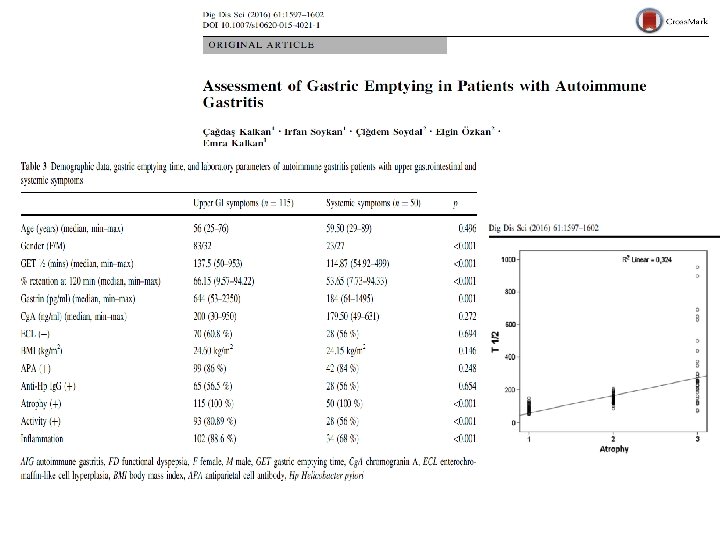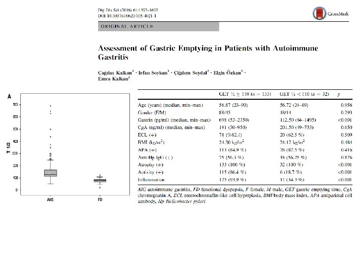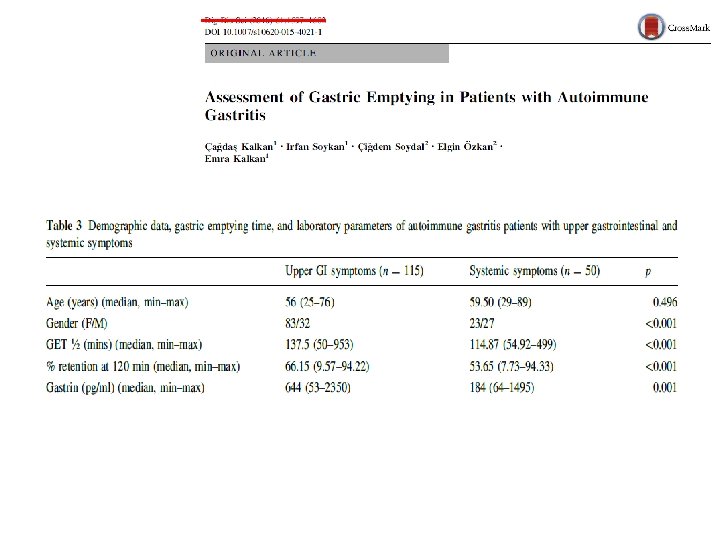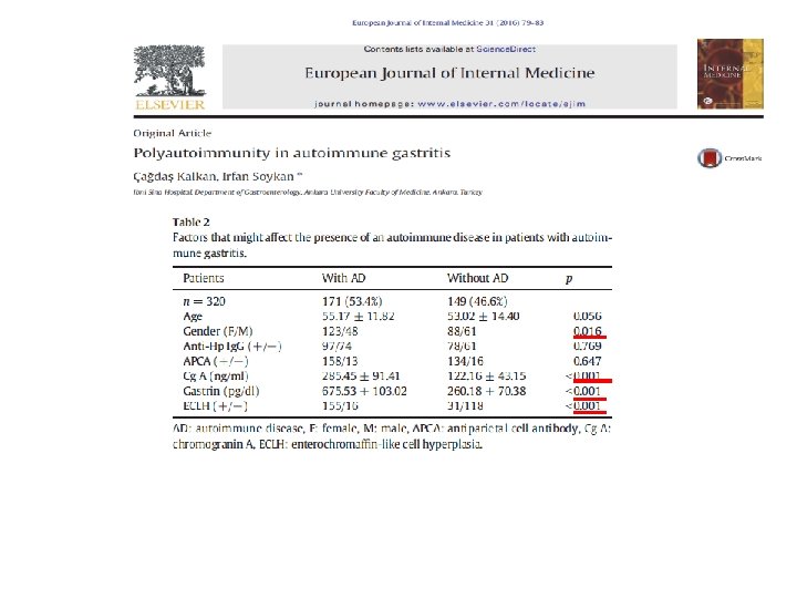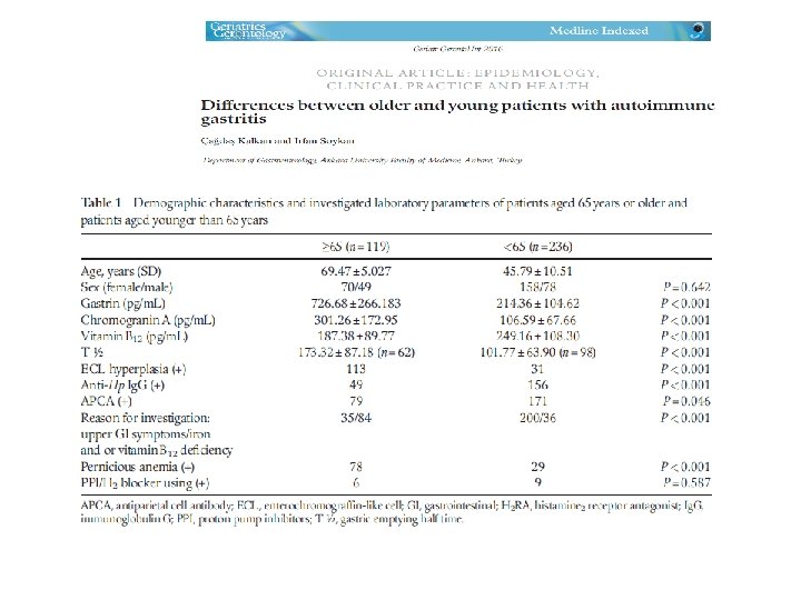 A Laboratory Score in the Diagnosis of Autoimmune Atrophic Gastritis: A Prospective Study Miceli E et al, J Clin Gastroenterol 2015; 49: e 1 -e 5 SS: AUROC 0. 93, sens: 85%, spec: %83