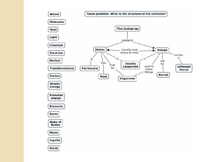 Create a concept map How is matter related to elements and compounds or • What is the relationship between heat and energy •
