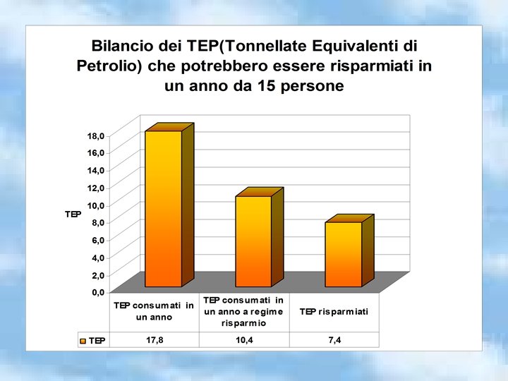 Se tutti i cittadini di Firenze (364. 052 dato del 31/08/2007) attuassero questo piano di risparmio energetico, in 1 anno potrebbero essere risparmiati 179. 600 TEP 152. 900 TEP potrebbero coprire il fabbisogno energetico annuale di una città di 235. 000 abitanti (dato dell’Autorità per l’energia elettrica e il gas http: //www. autorita. energia. it/) Una città di 235. 000 abitanti è più grande di Liegi (circa 189. 000 abitanti: dato estratto da Wikipedia )