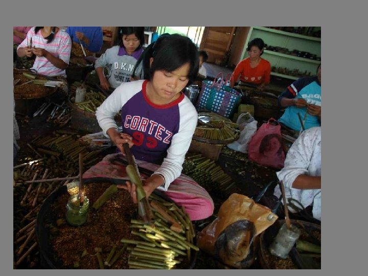 Une fabrique artisanale de cigares Cherriots: une quinzaine de filles en rangs d’oignons chantonnent à genoux. Elles sont très rapides et font 700 cigares en moyenne, par jour, chacune!!! Il convient de remarquer que la limitation de l’âge d’embauche en France ne sera porté à seize ans qu’en en 1959!!!