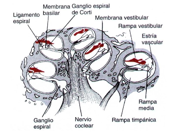 Oído Interno n Morfología Coclear: • Rampa Central o coclear • Rampa Vestibular • Rampa Timpánica