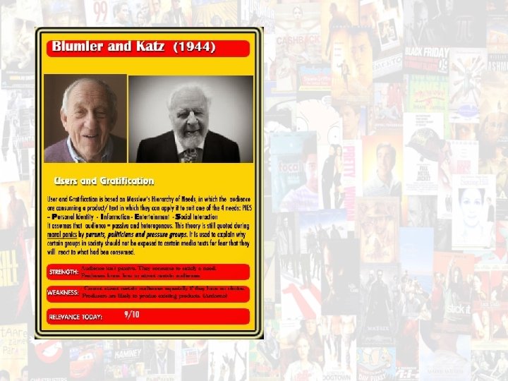 Audience Response Theories Hypodermic Needle Model Reception Theory Passive: How the media affects audiences Active: What the audience do with/to media texts 2 Step Flow Theory Uses and Gratifications Model