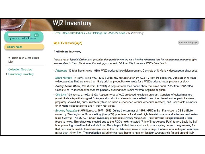 ~2010 AVPRES STATE OF PLAY –Preservation Services owned almost no audiovisual equipment –No specialized staff to oversee reformatting by vendors –Little useful metadata for rare & unique audiovisual holdings
