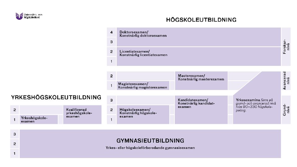 Kraven delas in i: Grundläggande behörighet Krävs till alla kurser och program på högskolans grundnivå Särskild behörighet Varierar mellan utbildningarna Kan vara gymnasiekurser, arbetslivserfarenhet, tidigare högskolestudier