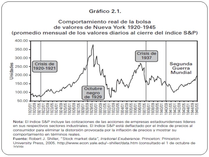 A euforia e seus problemas Nem todos os setores Setores fora da expansão: carvão, ferrovias, agricultura: preços não se recuperam depois da deflação de 21, Dificuldade mais de ¼ da população “Pobreza negra” Euforia – contamina a bolsa e outros ativos Bolhas: imobiliária (Florida) Valorização das ações lucros enormes no processo e existência de crédito Efeito riqueza – cria circulo viciosos (virtuoso ? ) perspectiva que isto não tem limites: não percepção de risco e afastamento dos fundamentos Grande numero de bancos comerciais: dificuldade do FED em regular ou supervisionar Não alcance; Não dispõe de instrumentos 1928 especulação continua mesmo com aumento dos juros e maior cautela dos bancos