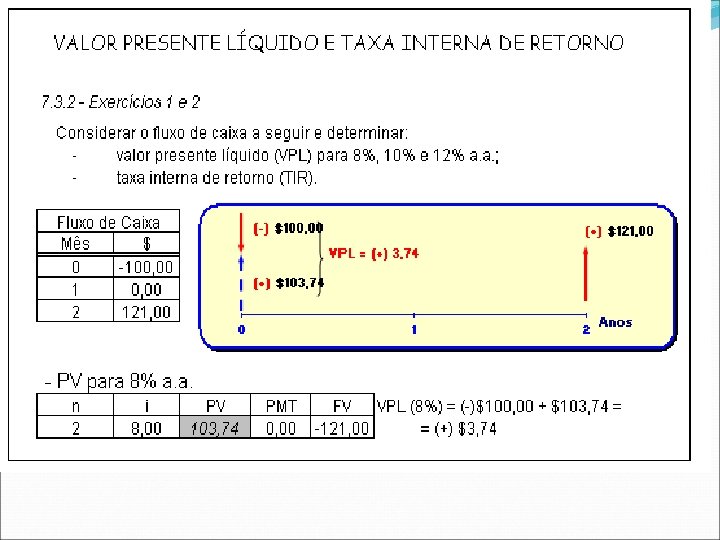 7. 2. 2 Exercício 1 Determinar o valor presente do fluxo de caixa a seguir, com a taxa efetiva de juros de 8% ao ano.