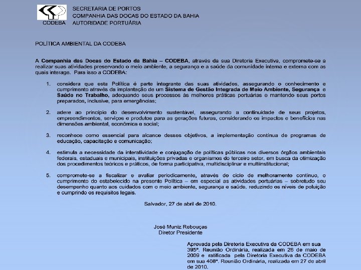 4. 2 – Política de SST A Alta Direção deve definir e autorizar a política de SST da organização e assegurar que, dentro do escopo definido de seu sistema de gestão da SST, a política: a). Seja apropriada à natureza e escala dos riscos de SST da organização; b). Inclua um comprometimento com a prevenção de lesões e doenças e com a melhoria contínua da gestão da SST e do desempenho da SST; c). Inclua um comprometimento em atender, pelo menos, aos requisitos subscritos pela organização que se relacionem a seus perigos de SST; d). Forneça o arcabouço para o estabelecimento e análise crítica dos objetivos de SST; arcabouço – esqueleto, estrutura