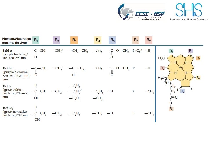 Clorofila e Bacterioclorofila Diferentes formas de clorofila ou bacterioclorofila Absorvem luz de diferentes comprimentos de onda Fototróficos diferentes podem coexistir no mesmo habitat Diversidade de pigmentos tem um significado ecológico
