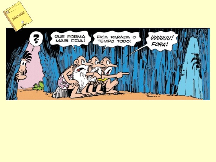 05. (PUCPR) Platão “. . . Agora, retomei, imagina nossa natureza, segundo ela tenha ou não recebido educação. E compara-a com o presente quadro: Imagina homens numa morada subterrânea em forma de caverna, cuja entrada, aberta à luz, estendende-se sobre todo o comprimento da fachada; eles estão lá desde sua infância, as pernas e o pescoço presos em correntes, de tal sorte que eles não podem mudar de lugar, nem ver além deles, pois os laços os impedem de virar a cabeça; a luz de um fogo acesso ao longe sobre uma elevação brilha atrás deles;