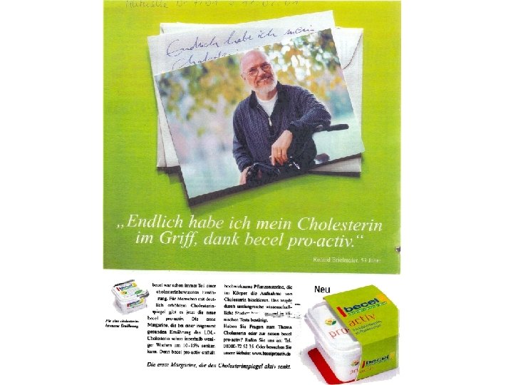 Verfahren im Grenzbereich AM-LM Novel Food: Margarine mit cholesterinsenkender Wirkung Kollision zwischen europäischer Kennzeichungsauflage und nationalem Verbot krankheitsbezogener Werbung für Lebensmittel gem. § 18 Abs. 5 LMBG OLG Hamburg v. 29. 08. 2002 (3 U 236/01): Auslobung mit "deutlich erhöhtem Cholesterin" nicht von Kennzeichnungsauflage umfasst!