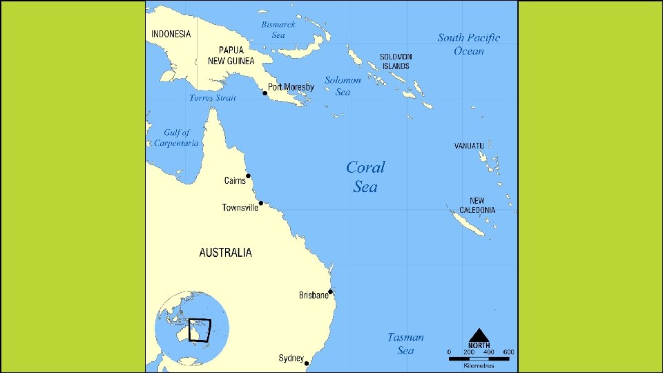 Coral Sea • It’s off the northeast coast of Australia, part of the Pacific Ocean. • When the earth’s crust moved millions of years ago, it created the Coral Sea and the Great Dividing Range (largest mountain range in Australia). • Coral Sea islands are scattered over thousands of miles of ocean. • No one lives on the islands except for a small group of weather specialists.