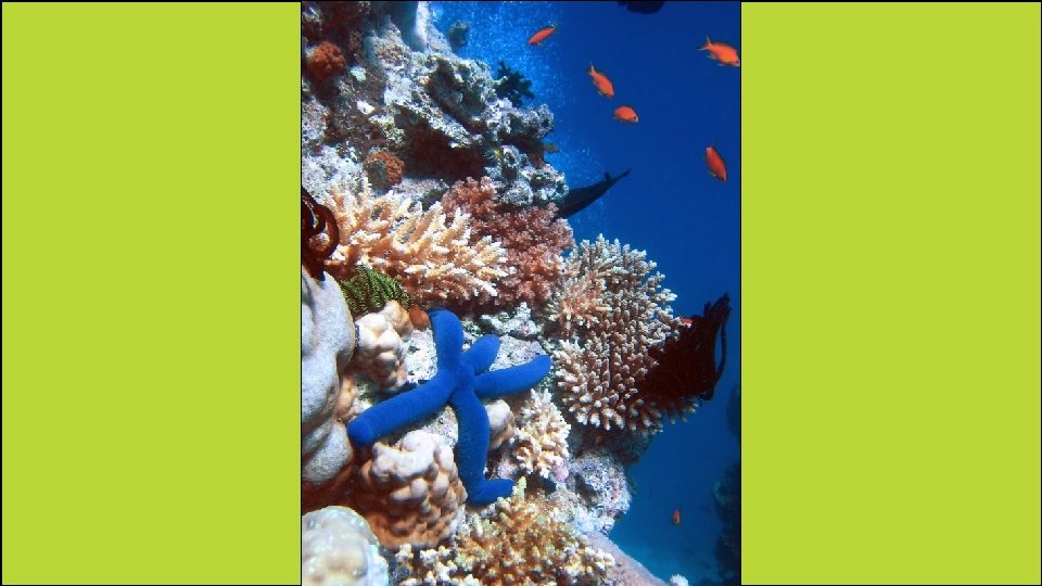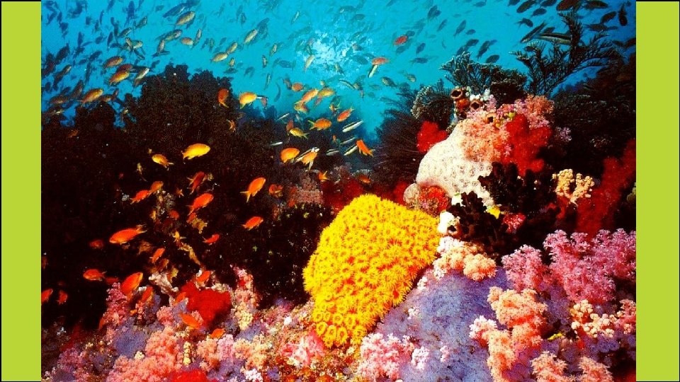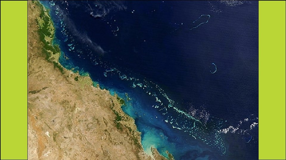 Great Barrier Reef • This is the world’s largest coral reef. • It’s over 1, 200 miles long! • It lies off the northeast coast of Queensland, in the Coral Sea. • It contains an amazing variety of marine life, including the world’s largest collection of coral. • 400 types of coral, 1, 500 species of fish, & 4, 000 mollusks (snails, clams, octopi, & squid) are found here. • It’s also home to rare species like the sea cow and the large green turtle.