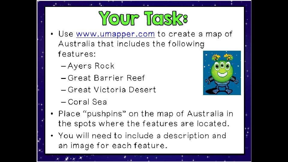Teachers If you cannot use computers (or the site is unavailable), I have included another option for the Alien Adventure project.