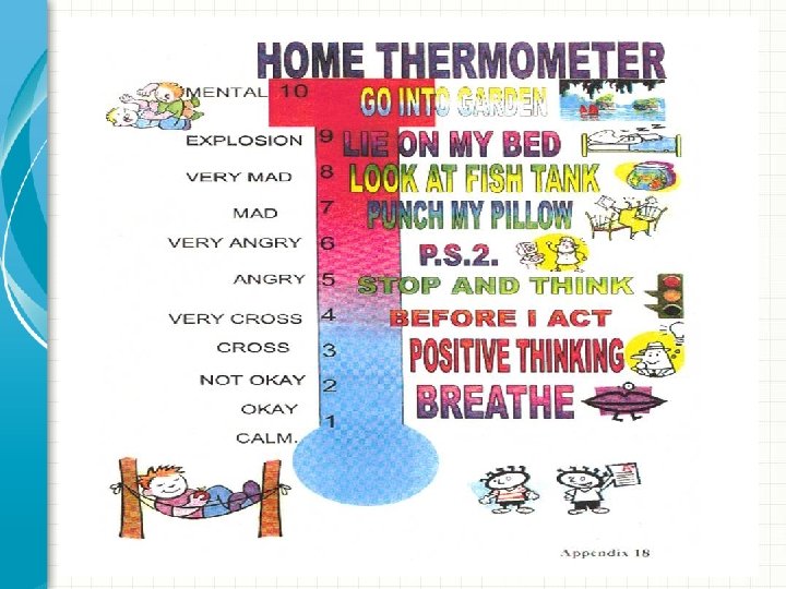 5. Supporting with Stress and Anxiety • Recognising high levels of stress and anxiety and resulting behaviour. (fear, flight, fight). • Recognising the strategies child with autism may use to manage worries , stress and anxiety. • Providing ways of identifying own rising levels of stress. • Supporting and providing strategies to manage them high levels of stress. • Providing meaningful physical activities. • Creating a good place to be.