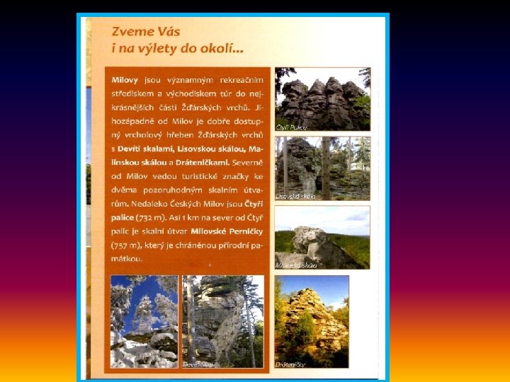 Příjezd do Milov, prohlídka okolí a hotelu DEVĚT SKAL