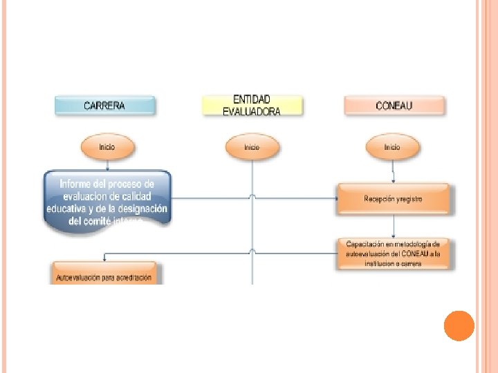ETAPA PREVIA AL PROCESO DE ACREDITACIÓN (REGLAMENTO DE LEY 28740, ARTÍCULO 11) Comprende las siguientes actividades: a) Información al órgano operador del inicio del proceso de evaluación de la calidad educativa b) Designación del comité interno responsable del proceso y comunicación de sus integrantes al órgano operador c) Capacitación de los miembros del comité en la metodología de autoevaluación aprobada por el órgano operador. d) Inicio de la autoevaluación