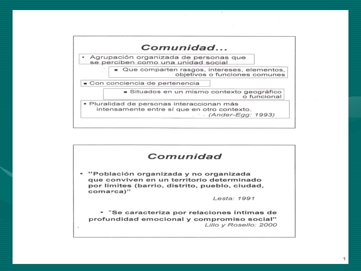 ¿Qué es una Comunidad? ÿ Es un grupo de familias que viven en un área en común. ÿ Tienen las mismas necesidades y comparten servicios.