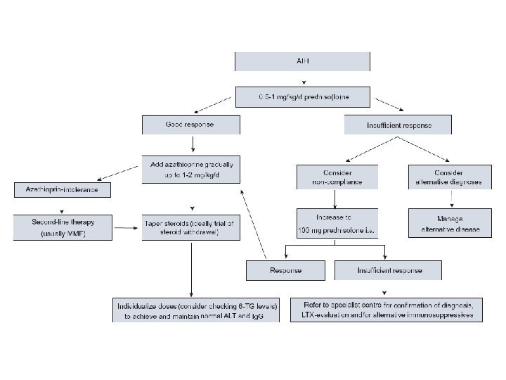 • Chronic hepatocellular disease of unknown etiology • Clinical presentation is variable • Diagnosis based upon LFTs, serology, gamma globulins, and histology • Immunosuppressive therapy is the mainstay of treatment • Tailor therapy based upon treatment endpoints