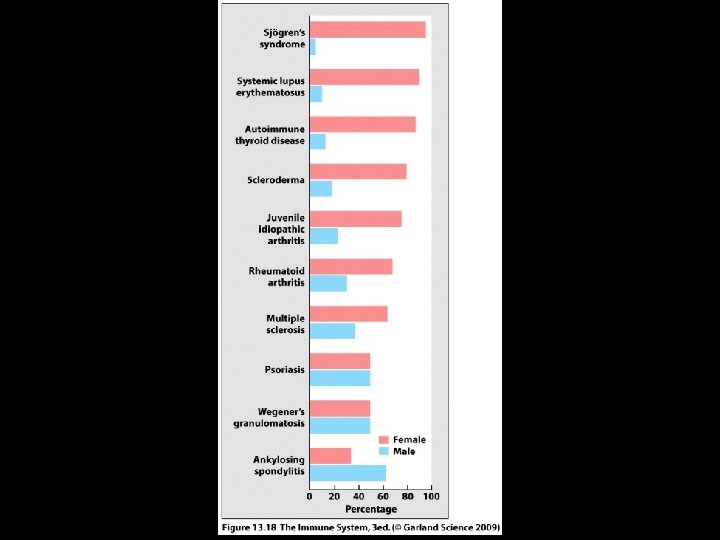 AUTOIMMUNE DISEASES * A Group of 60 to 80 chronic inflammatory diseases with genetic predisposition and environmental modulation * Prevalence of 5% to 8% in US * Prevalence is greater for females than males • 75% of cases • 4 th largest disease class in women