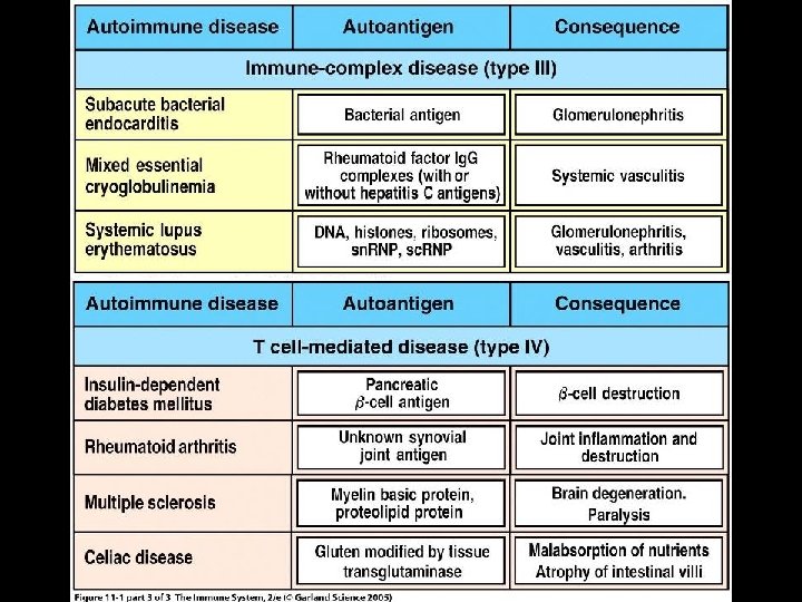 CLASSIFICATION OF AUTOIMMUNE DISEASES BY EFFECTOR MECHANISMS * Type II • Antibody against cell-surface or extracellular matrix antigens (Type II hypersensitivity) * Type III • Formation and deposition of immune complexes (Type III hypersensitivity) * Type IV • T cell mediated (Type IV hypersensitivity)