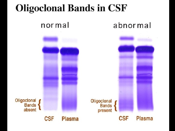 MULTIPLE SCLEROSIS (MS) * Effector mechanisms • Myelin basic protein is primary autoantigen for CD 4 TH 1 cells * Radiology diagnosis • MRI for detecting demyelinating lesions (plaques) • Laboratory diagnosis • High resolution protein electrophoresis for • Oligoclonal bands in CSF