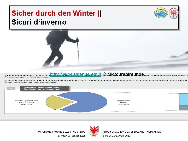 Sicher durch den Winter || Sicuri d‘inverno http: //www. alpenverein. it Skitourenfreunde AUTONOME PROVINZ BOZEN - SÜDTIROL Sonntag, 23. Januar 2022 PROVINCIA AUTONOMA DI BOLZANO - ALTO ADIGE Sunday, January 23, 2022