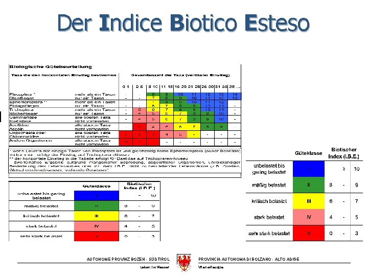 Der Indice Biotico Esteso AUTONOME PROVINZ BOZEN - SÜDTIROL Leben im Wasser PROVINCIA AUTONOMA DI BOLZANO - ALTO ADIGE Vita nell’acqua