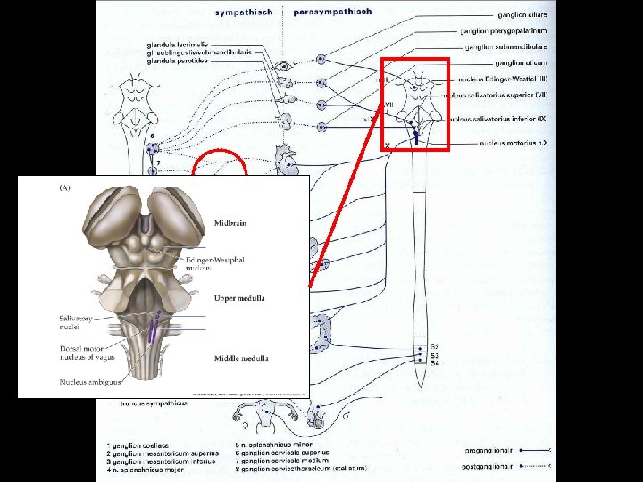 mediale prefrontale en cingulaire cortex insulaire cortex Amygdala Hypothalamus Autonome centra in reticulaire formatie / Centrale grijze stof Preganglionaire neuronen in hersenstam en ruggenmerg Primaire motorneuronen in autonome ganglia Nucleus tractus solitarii Spinale viscerosensibele neuronen; Nn IX en X Eind organen Thalamus Centrale autonome netwerk: regulatie van preganglionaire cellen van ortho – en parasympatische zenuwstelsel