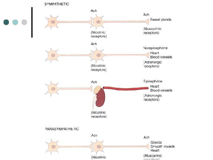 PSNS & SNS – Similarities “B” fiber “C” fiber Nuclei Acetylcholine Spinal cord or brainstem Periphery Ganglia