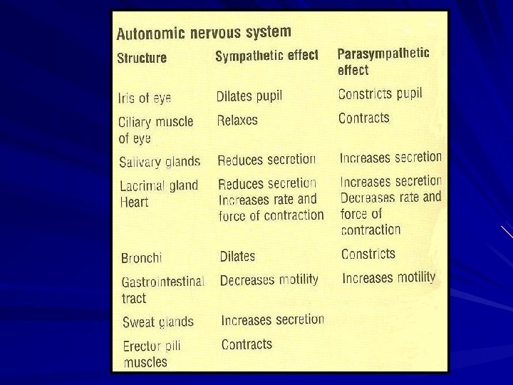 OBJECTIVES At the end of the lecture, students should be able to: § Define the autonomic nervous system. § Describe the structure of autonomic nervous system § Trace the preganglionic & postganglionic neurons in both sympathetic & parasympathetic nervous system. § Enumerate in brief the main effects of sympathetic & parasympathetic system