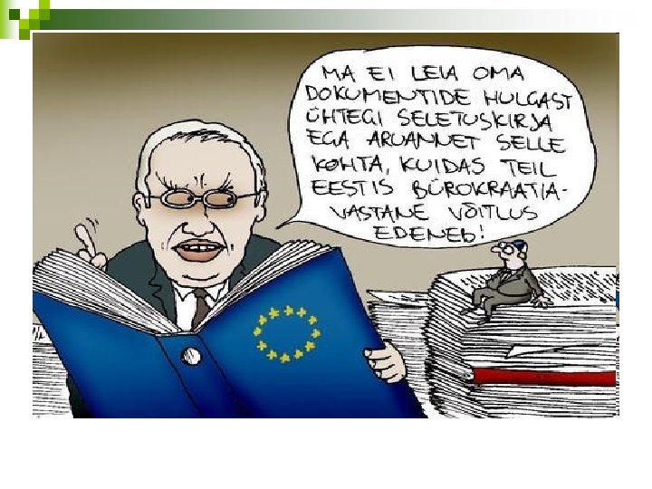 Negatiivne: Tavakeeles sõnal “bürokraatia” halvustav tähendus. Tavainimeste jooksutamine Paberiuputus Jne n Positiivne: Ilma asjaajamiseta ei toimi ükski riik! n