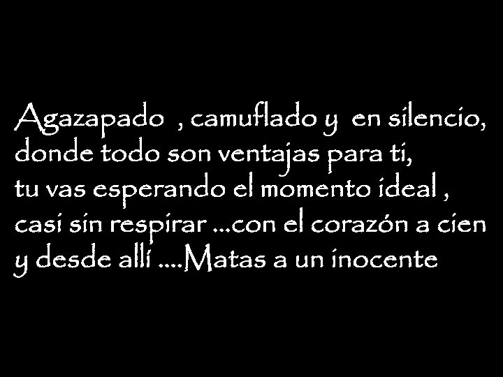 Aprietas un gatillo y bammm sale un proyectil como un trozo de infierno , un trozo de metal incandescente , una bala asesina de tu rifle , de tu escopeta que acaba con esa vida que a ti , no te hacia ningún mal.