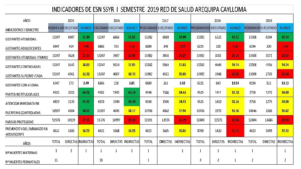 AVANCE DE INDICADORES DE LA ESN SALUD SEXUAL Y REPRODUCTIVA- I SEMESTRE 2019