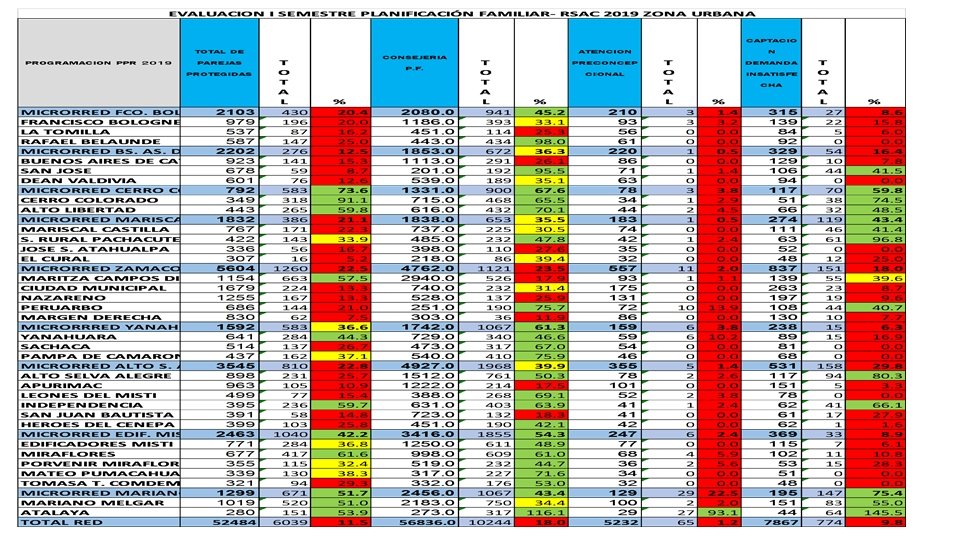 GRAFICOS DE AVANCE DE PLANIFICACION FAMILIAR Y MATERNO- NEONATAL I SEMESTRE 2019 RSAC
