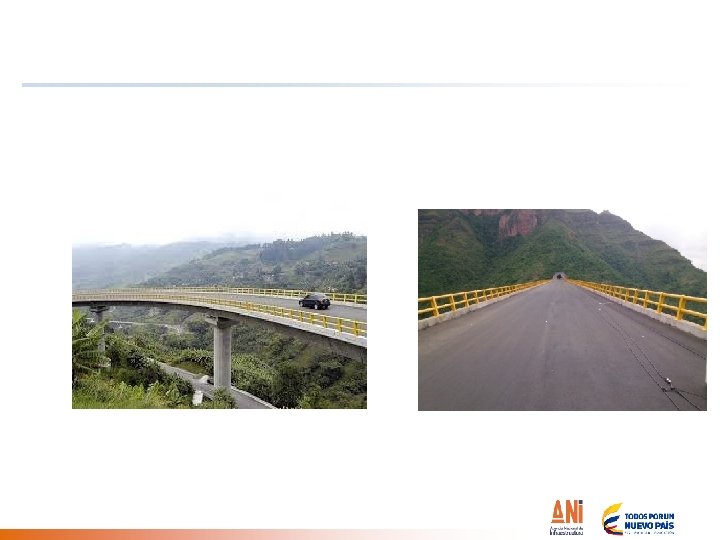 Popayán-Santander de Quilichao Metas • Entrega estudios y diseños por el Concesionario • Licenciamiento ambiental – Se entregará el EIA el 3 de junio de 2016 para revisión de la Interventoría • Gestión predial y entrega plan de adquisición predial • Actividades de socialización del proyecto • Entrega plan de obras • Entrega Plan de manejo y traslado de redes • Convenio con la POLCA • Iniciar Fase de Construcción el 18 de septiembre de 2016 Avances • Se conformo el panel de amigable componedor. • Se entregó el corredor vial al Concesionario NUEVO CAUCA SAS el 1 de diciembre de 2015 • Se entregaron los estudios y diseños definitivos el 20 de abril de 2016. En revisión actualmente por la Interventoría. • Se suscribió el Convenio con la POLCA el 6 de mayo de 2016 y se entregaron los elementos y bienes a la Policía el 12 de mayo de 2016.