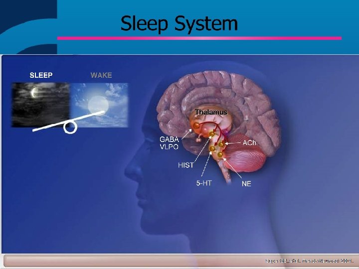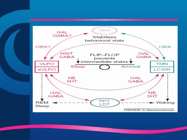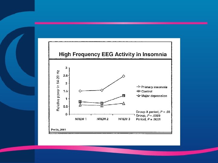 Alterações Neurobiológicas na Insônia ü Hiperalerta ü Aumento de atividade cortical ü taxa metabólica nas 24 horas ü da freqüência cardíaca e tônus simpático ü atividade rápida EEG consumo de glicose no córtex órbitofrontal e qualidade subjetiva do sono ü o do metabolismo no tegmento pontino e alguns circuitos tálamo corticais se correlaciona com o do tempo desperto a noite Nofzinger, 2006