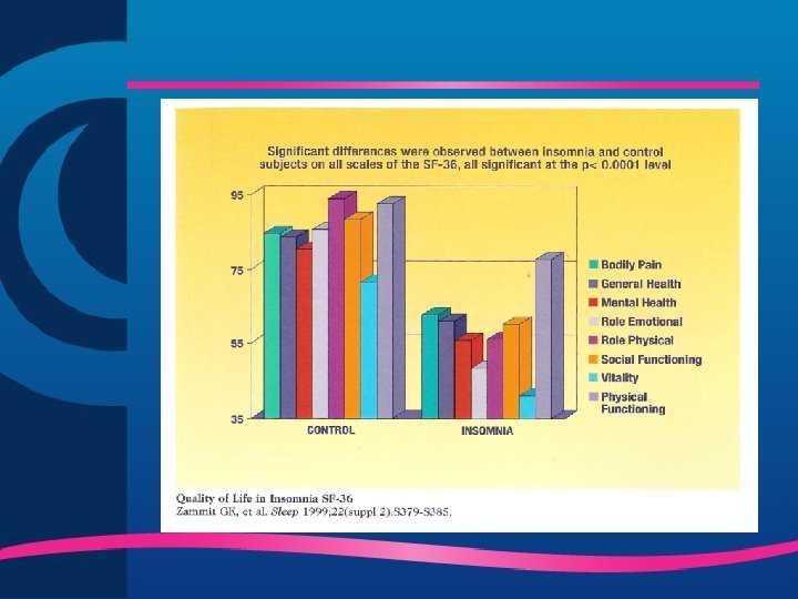 Insônia – Segundo o Consenso Brasileiro “ Os pacientes com insônia crônica, tais como os deprimidos, têm uma alta incidência de queixas médicas e procuram mais serviços médicos do que a população em geral, tendo uma qualidade de vida reduzida. ” Tufik et al. I Consenso Brasileiro de Insônia. Hypnos_17_09