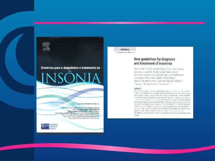 Insônia – Definição/Critérios § DSM-IV (1) • Dificuldade em iniciar ou manter o sono ou presença de sono não reparador por no mínimo 1 mês, que resulta em impacto no humor ou queda no rendimento social, profissional ou intelectual. § RDCID/ICSD-2 (2) • O paciente deve apresentar 1 ou mais dos seguintes sintomas, que devem acontecer apesar de boas condições para o sono e deve ter alterações diurnas associadas: • Dificuldade em iniciar o sono, • Dificuldade em manter o sono, • Acordar cedo demais, • Sono não restaurador crônico, • Má qualidade de sono. § CID-10 (3) • Dificuldade em iniciar ou manter o sono ou má qualidade do sono, pelo menos 3 x/semana por 1 mês. O paciente ainda deve apresentar preocupação com a falta de sono e conciência com relação seus efeitos noturnos e diurnos. 1 - American Psychiatric Association (2000): Diagnostic and Statistical Manual of Mental Disorders (DSM-IV-TR), 4 th ed. , Text Revision. Washington, DC: American Psychiatric. Association. 2 -American Academy of Sleep Medicine (2005): International Classification of Sleep Disorders: Diagnostic and Coding Manual, 2 nd ed. , (ICSD-2). Rochester, MN: Sleep Disorders Association. 3 - World Health Organization (1991): International Classification of Diseases(ICD-10). Geneva: World Health Organization